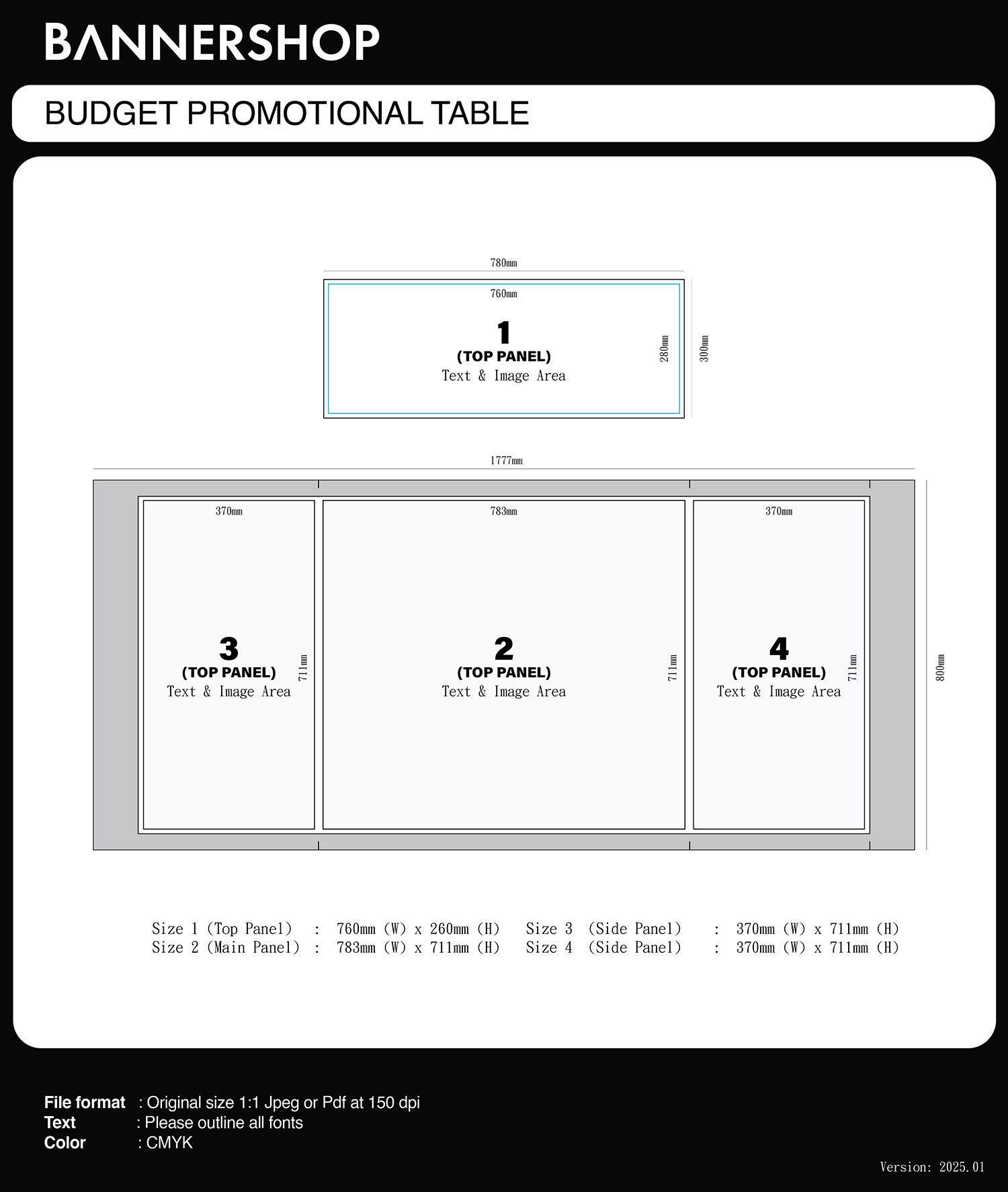 - ‧ Budget promotion table - Made by PVC and Avery sticker, tough and durable.